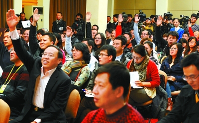 (新聞發(fā)布會(huì)上,媒體記者踴躍提問。)