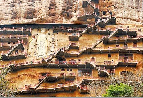 麥積山石窟是“絲綢之路”上重要的宗教藝術(shù)古跡,也是中國古代石窟藝術(shù)的代表之一,由于保存得相對(duì)完整,所以比較生動(dòng)具體地揭示了佛教雕像、佛教藝術(shù)在中國的發(fā)展,在中國藝術(shù)史上占有重要地位。 (據(jù)《絲綢之路》)