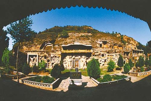 莫高窟現(xiàn)存有壁畫和雕塑的492個(gè)石窟大體可分為四個(gè)時(shí)期:北朝、隋唐、五代和宋、西夏和元。