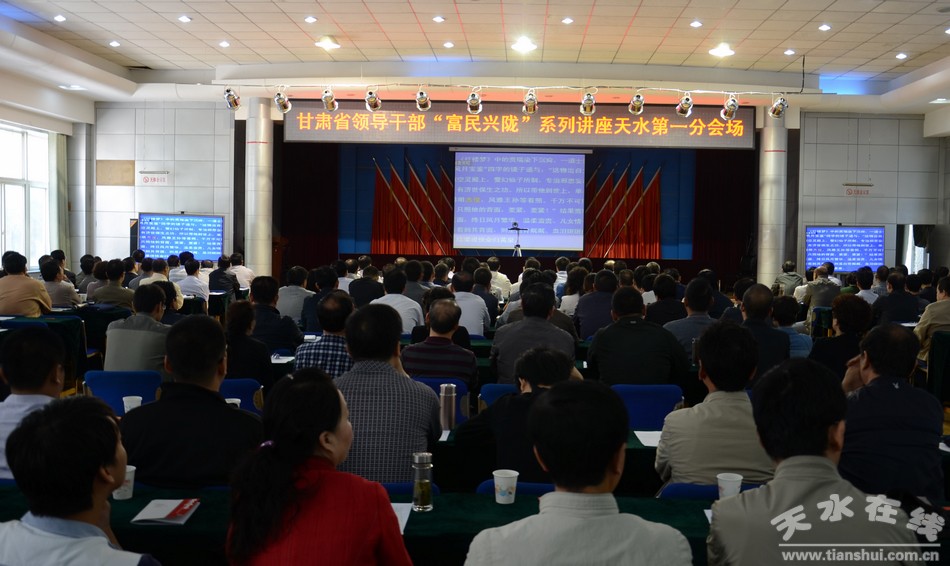 。ㄌ焖腥舜蟪N瘯敝魅吸S孝榮、市政協(xié)副主席王振宇及市直部門負(fù)責(zé)同志在天水市委黨校天水第一分會場聆聽講座。)
