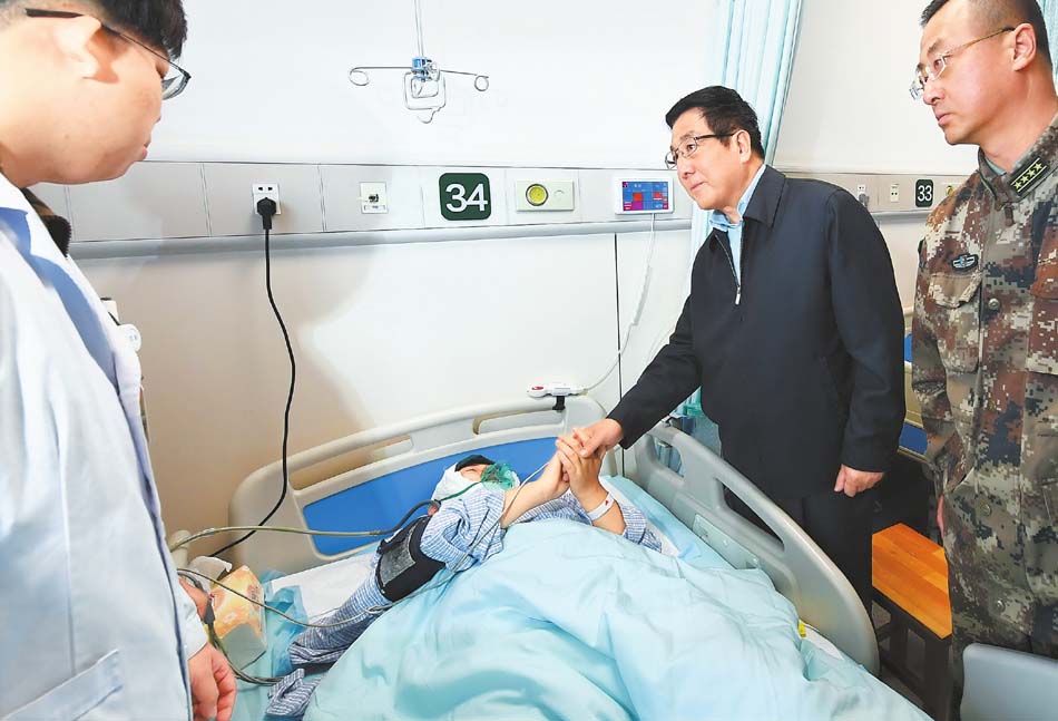 11月4日,省委書記、省人大常委會主任林鐸專程前往解放軍聯(lián)勤保障部隊940醫(yī)院(原蘭州軍區(qū)蘭州總醫(yī)院),看望慰問“11·3”重大交通事故中受傷人員。 本報記者 張鐵梁