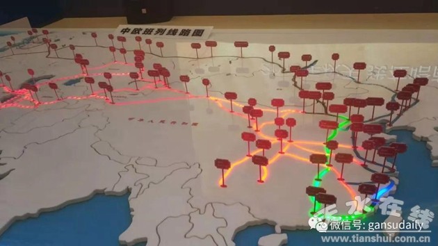 第六單元“開放 合作 共贏”展示有中歐班列線路圖沙盤,其中就能看到蘭州。