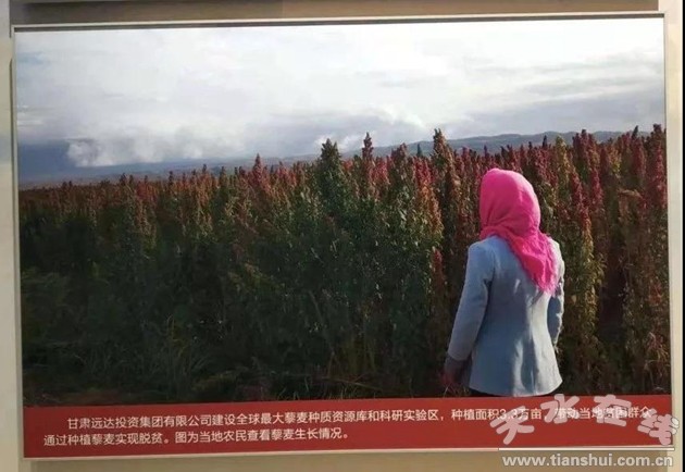 甘肅遠(yuǎn)達(dá)投資集團有限公司建設(shè)全球最大藜麥種質(zhì)資源庫和科研實驗區(qū),種植面積3.3萬畝,帶動當(dāng)?shù)刎毨罕娡ㄟ^種植藜麥實現(xiàn)脫貧。圖為當(dāng)?shù)剞r(nóng)民查看藜麥生長情況。