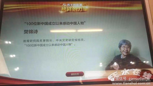 繼續(xù)參觀,在第九單元“以改革創(chuàng)新精神全面推進(jìn)黨的建設(shè)新的偉大工程”,“敦煌的女兒”樊錦詩出現(xiàn)在“榜樣的力量”大屏中。