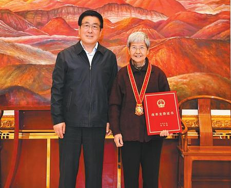 在中共中央、國務(wù)院舉行的慶祝改革開放40周年大會(huì)上,我省推薦的樊錦詩被授予“改革先鋒”稱號(hào),獲頒“改革先鋒”獎(jiǎng)?wù),受到?xí)近平總書記的親切會(huì)見,是我省唯一獲得此項(xiàng)殊榮的先進(jìn)代表。