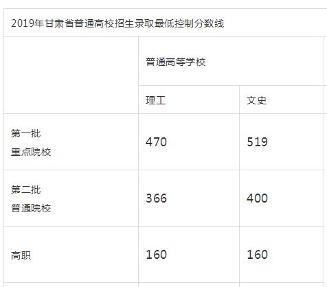 2019年甘肅省普通高校招生錄取最低控制線公布