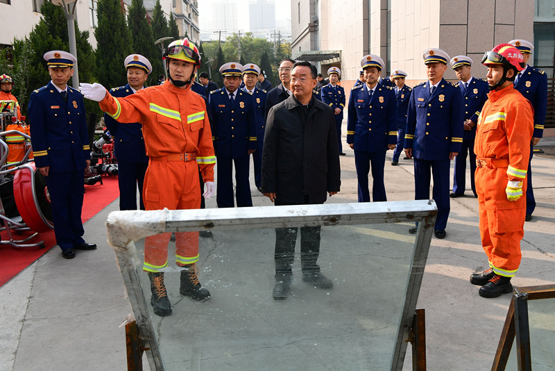 唐仁健指出,組建國家綜合性消防救援隊伍,是黨中央適應國家治理體系和治理能力現(xiàn)代化作出的重大戰(zhàn)略決策。去年11月9日,習近平總書記親自為國家綜合性消防救援隊伍授旗并致訓詞。一年來,全省消防救援隊伍以旗幟為指引,以訓詞為號令,緊緊圍繞服務保障全省改革發(fā)展穩(wěn)定大局,主動作為、勇于擔當,交出了一份讓黨和人民滿意的答卷。他強調,要始終把習近平總書記的授旗訓詞作為統(tǒng)領全省消防救援隊伍建設發(fā)展的“魂”和“綱”,圍繞“為什么建設國家綜合性消防救援隊伍、建設什么樣的隊伍、怎樣建設這支隊伍”等重大問題,深學細悟,不斷增強“四個意識”、堅定“四個自信”、做到“兩個維護”。要始終堅持紀律部隊建設標準,換裝不換心氣、換裝不換作風、換裝不換精神,立規(guī)矩、守紀律,抓養(yǎng)成、抓日常,努力鍛造一支關鍵時刻靠得住、頂?shù)蒙、打勝仗的正?guī)化、專業(yè)化、職業(yè)化消防救援隊伍。要始終從難從嚴錘煉摔打隊伍,樹立“全災種”“大應急”理念,鍛造刀山敢上、火海敢闖的過硬本領,確保專業(yè)高效處置每一起災害事故,最大限度保衛(wèi)人民群眾生命財產安全,保護廣大消防指戰(zhàn)員人身安全。要始終把人民放在心中最高位置,把人民褒獎作為最高榮譽,不畏艱險、不辱使命,切實當好黨和人民的“守夜人”,黨和政府溫暖的傳遞者。各地各部門要把支持消防救援隊伍建設、關心關愛消防指戰(zhàn)員作為一項重要政治任務,高看一眼、厚愛一分,進一步加強消防工作,讓全省消防指戰(zhàn)員工作更安心、更放心、更舒心。