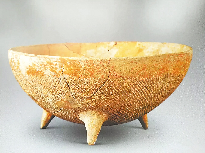 屬于大地灣一期文化的寬帶紋三足彩陶缽