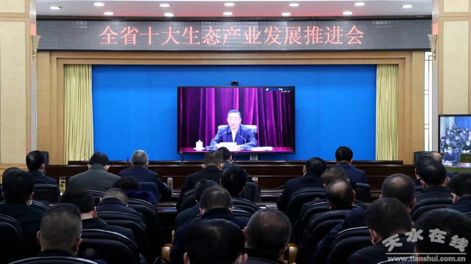 天水在線報道 全省十大生態(tài)產(chǎn)業(yè)發(fā)展推進會以視頻形式開到縣一級。市領(lǐng)導(dǎo)王軍、趙四輩、景丹、逯克宗,市政府秘書長王永祥在天水分會場參加會議。
