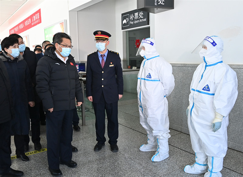 春節(jié)期間人員流動聚集增加,疫情輸入和傳播風險進一步增大。任振鶴來到寶蘭客專定西北站,檢查常態(tài)化疫情防控工作。他強調(diào),既要嚴之又嚴、細之又細、實之又實做好疫情防控各項工作,又要防止“擅自加碼”“層層加碼”,科學防控、精準防控,細化舉措、加強服務,把好關口做好“外防輸入”,枕戈待旦做好“平急轉(zhuǎn)換”,及時精細提供便利、人性化的出行服務,有力有序保障好人民群眾在春節(jié)期間的基本生活需求與精神文化需求,不斷鞏固疫情防控持續(xù)向好態(tài)勢。