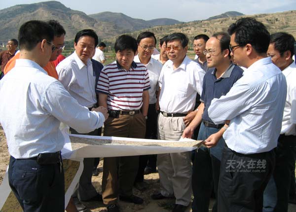 6月25日,西北電網(wǎng)公司總經(jīng)理孫佩京(右三)正在甘谷縣新興鎮(zhèn)史家坪村考察將在我市興建的750千伏變電站站址。當(dāng)天,孫佩京一行和副市長(zhǎng)楊維俊及省、市電力部門相關(guān)負(fù)責(zé)人一起還在秦安縣興國(guó)鎮(zhèn)楊坪村、林坪山就變電站選址情況進(jìn)行了實(shí)地踏勘。