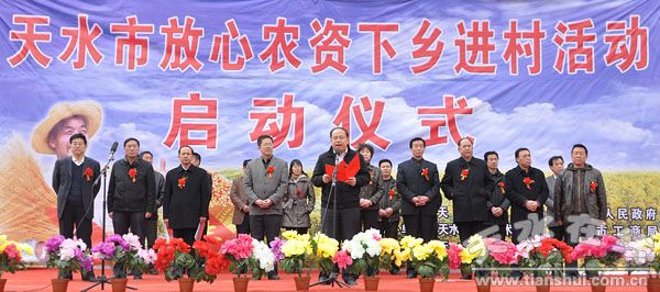 3月14日,2011年天水市放心農(nóng)資下鄉(xiāng)進(jìn)村活動(dòng)啟動(dòng)儀式在甘谷縣隆重舉行,今年農(nóng)資打假護(hù)春耕行動(dòng)以“放心農(nóng)資下鄉(xiāng),保障春耕生產(chǎn)”為主題,目的在于促進(jìn)全市優(yōu)質(zhì)農(nóng)資安全供應(yīng),營(yíng)造農(nóng)資打假濃厚氛圍,切實(shí)維護(hù)農(nóng)民群眾權(quán)益,保障春耕生產(chǎn)的順利開(kāi)展。