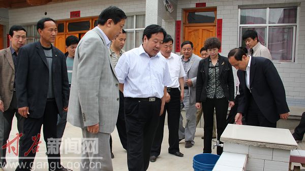 陳德興一行先后來到甘谷縣西北部農(nóng)村飲水安全工程磐安水廠、二號高位水池、六峰水廠、甘谷縣2010年中央財政小型農(nóng)田水利重點縣項目六峰鎮(zhèn)中渠維修改造工程實地查看,并仔細(xì)了解謝家灣鄉(xiāng)汪家溝灘村農(nóng)村飲水安全工程自來水入戶情況。