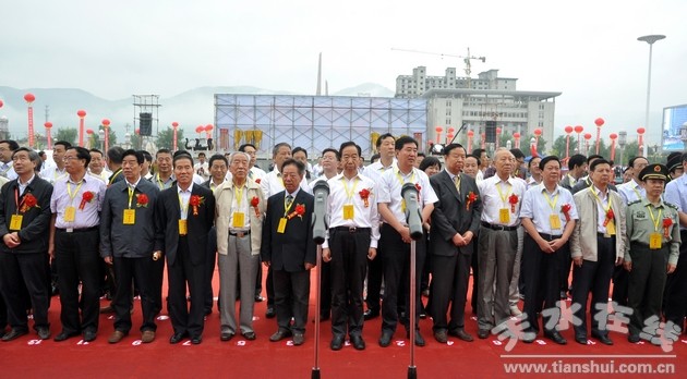 甘肅省人大常委會(huì)副主任周多明,甘肅省政協(xié)副主席張景輝,甘肅省人大常委會(huì)原副主任程有清,山西省原副省長(zhǎng)彭致圭,甘肅省高級(jí)人民法院原院長(zhǎng)王世文,總裝核研所專家組組長(zhǎng)王奎祿,甘肅省軍區(qū)原副政委楊耀春,甘肅省軍區(qū)原副司令員張臣剛,甘肅省軍區(qū)政治部原主任石新貴,陜西省軍區(qū)參謀長(zhǎng)移友學(xué),甘肅省人大常委會(huì)秘書長(zhǎng)張緒勝,甘肅省科技廳廳長(zhǎng)李文卿,慶陽市人大常委會(huì)主任付振偉,北車集團(tuán)扶貧辦主任王勇;天水市人大常委會(huì)主任柴金祥,市委副書記、市政協(xié)主席楊維俊,市委常委、組織部長(zhǎng)王光慶,市委常委、常務(wù)副市長(zhǎng)郭奇若,市委常委、市委秘書長(zhǎng)蔣曉強(qiáng),市委常委、宣傳部長(zhǎng)彭鴻嘉,市人大常委會(huì)副主任蕭菡、謝簡(jiǎn)平、王子生,副市長(zhǎng)溫利平,市政協(xié)副主席王欽錫、安志宏、楊發(fā)元、白曉玲;禮縣、通渭縣區(qū)和天水各縣區(qū)等省市縣領(lǐng)導(dǎo)出席揭幕儀式。