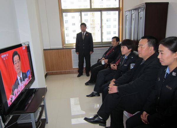 (縣法院組織收看十八大開幕式盛況)
