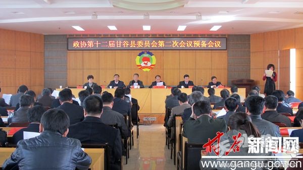 2月25日下午,政協(xié)甘谷縣第十二屆委員會第二次會議召開預(yù)備會議。甘谷縣政協(xié)主席、大會執(zhí)行主席王璽卿主持會議?h政協(xié)副主席李緒昌、王金生、王貴子、陳旭、蔣曉琴出席會議。