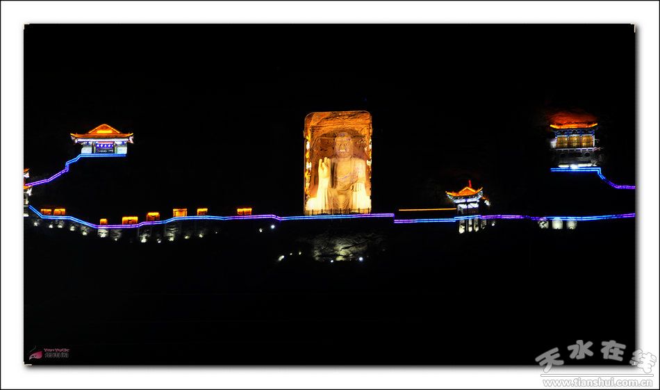 大像山石窟為甘谷八景之一的懸崖大像,大佛洞窟兩旁,依山附勢(shì)修有長(zhǎng)長(zhǎng)的走廊,如同一條腰帶。廊上窟龕相連,巍峨壯觀, 現(xiàn)存二十二個(gè)窟龕 ,大都平面近方形。正壁開(kāi)大圓拱龕和設(shè)高壇基,并有僧人修行的禪窟,這是大象山窟龕特殊之處,在全國(guó)也很罕見(jiàn)。甘谷大佛為半圓雕石胎泥塑,高23.3米,肩寬9.5米,頭高5.8米,膝長(zhǎng)6米。其造型高大雄偉,令人仰止,所具有的文化特質(zhì)可視為西方裝飾性雕塑和中國(guó)寫意性雕塑完美結(jié)合的藝術(shù)巨制。