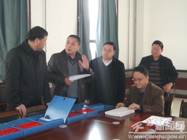 11月30日,省信訪局督查專員吳學(xué)勤、督查處處長呂建鋒、督查處主任科員張昕來甘谷檢查考核2013年信訪工作。市政府副秘書長、市信訪局局長蔡虎林、市信訪局副局長劉瑋,甘谷縣委常委、政法委書記馬驥等陪同檢查考核。
