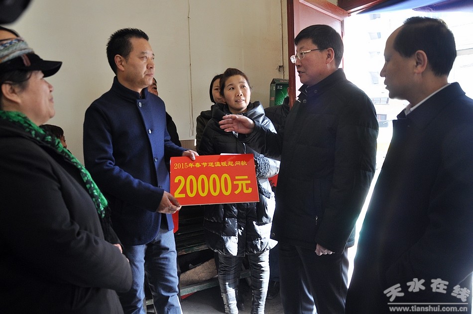新春佳節(jié)來臨之際,2月12日上午,天水市委副書記、市政協(xié)主席宋尚有,市人大常委會副主任蕭菡、副市長許強、市政協(xié)副主席安志宏帶領(lǐng)市委組織部、市民政局、市衛(wèi)計委等部門相關(guān)負(fù)責(zé)人赴甘谷縣開展“送溫暖”活動。