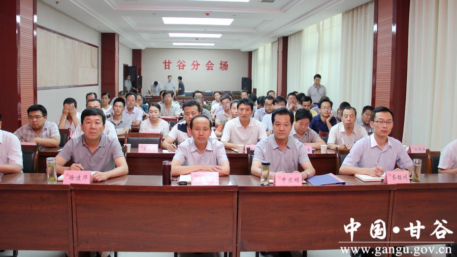 甘谷縣委書記賈忠慧,縣委副書記、縣長申君明,縣委副書記徐建華,副縣長齊銀川及各相關單位和部門負責人在甘谷分會場收聽收看了視頻會。