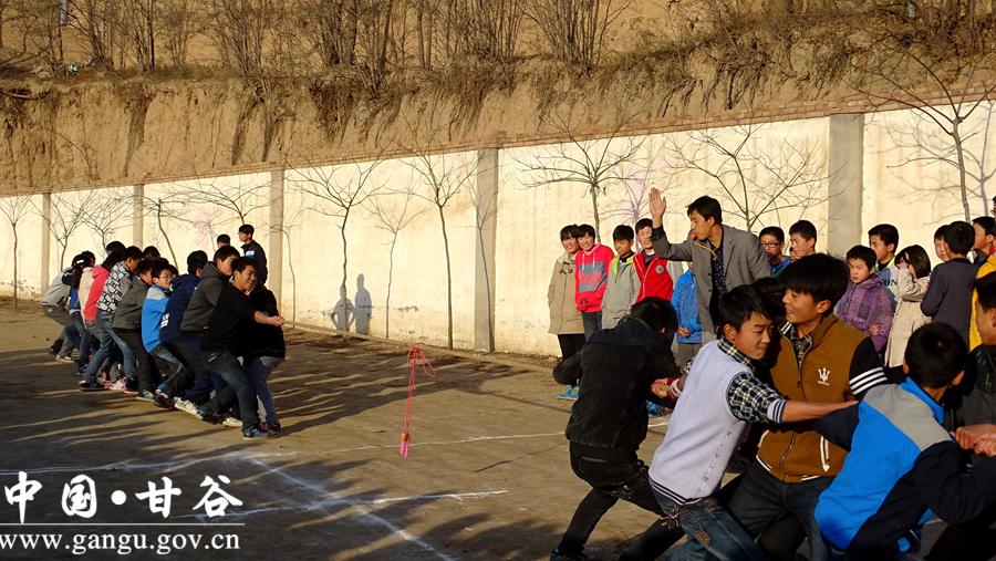 為了進一步豐富校園文化生活,增強學生體質,培養(yǎng)學生團隊協(xié)作精神,近日,甘谷大石初中舉辦了冬季拔河比賽。比賽以年級為單位,實行三局兩勝制,分三輪進行,最后決出年級冠軍和校冠軍進行表彰獎勵。