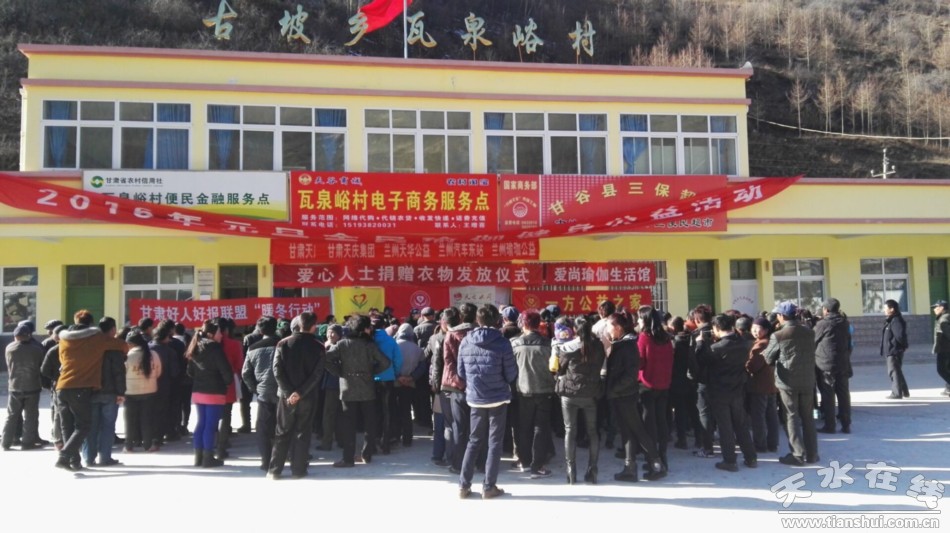 1月4日下午,甘谷縣古坡鄉(xiāng)瓦泉峪村委會大院里暖意融融,歡聲笑語 ,由愛心人士魏成林發(fā)起的“大愛無疆 ·愛在甘谷·資助古坡困難家庭”的捐贈活動在這里舉行。