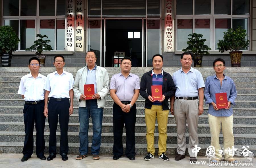 8月31日,甘谷縣舉行不動產(chǎn)權(quán)證書首發(fā)儀式,標(biāo)志著全縣不動產(chǎn)統(tǒng)一登記發(fā)證工作正式啟動。市不動產(chǎn)登記管理局副局長張劍鋒,副縣長牛武軍出席首發(fā)儀式;縣農(nóng)業(yè)局、林業(yè)局、畜牧局、房管局、政務(wù)服務(wù)中心負(fù)責(zé)人,不動產(chǎn)權(quán)人代表及縣國土局全體干部參加頒證儀式。