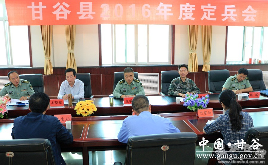 9月8日,甘谷縣召開2016年度定兵會。天水軍分區(qū)政委袁敬偉,縣委常委、常務(wù)副縣長孟曉龍,縣委常委、人武部長田暉,縣人武部政委鐘明斌出席會議;衛(wèi)計、教體、公安、監(jiān)察等部門單位負(fù)責(zé)人及各鄉(xiāng)鎮(zhèn)武裝部長參加會議。