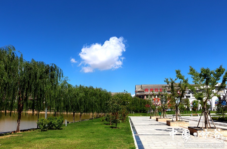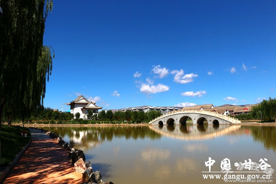 仲秋時(shí)節(jié),千年古城甘谷,天空湛藍(lán),藍(lán)得幽深,藍(lán)得寧靜;白云被湛藍(lán)的天空映襯得更加雪白,宛如堆積的白絹。