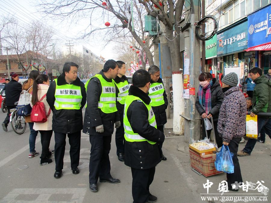 春節(jié)將至,為規(guī)范管理城區(qū)主次干道經(jīng)營攤點(diǎn),為廣大市民創(chuàng)造干凈整治、規(guī)范有序的城市環(huán)境秩序,甘谷縣執(zhí)法局周密部署,精心組織,集中力量扎實(shí)開展城區(qū)環(huán)境秩序?qū)m?xiàng)整治行動(dòng)。
