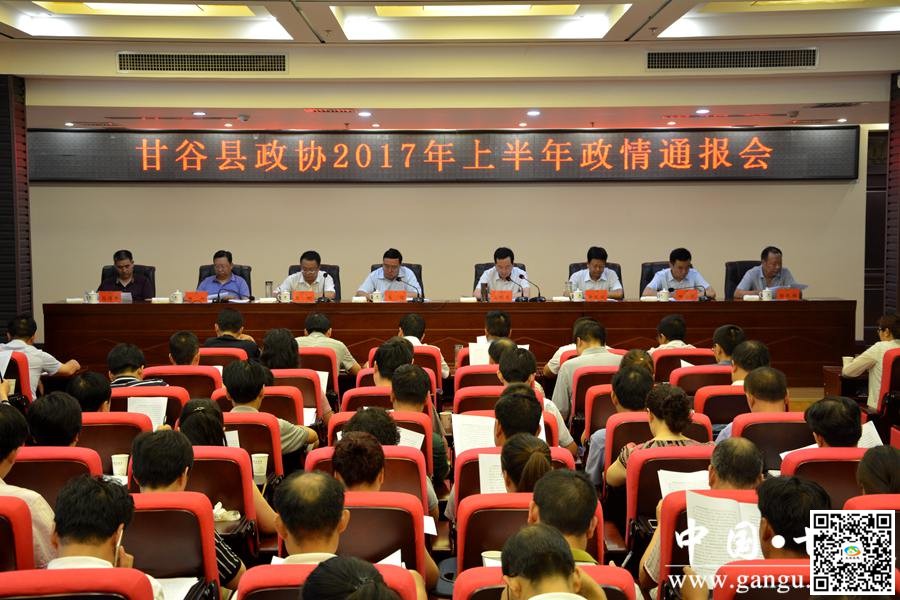 7月25日,甘谷縣政協(xié)召開2017年上半年政情通報會?h政協(xié)主席馬驥,縣委常委、常務(wù)副縣長孟曉龍,縣委常委、統(tǒng)戰(zhàn)部長王剛,縣政協(xié)副主席董成斌、陳旭、田小龍、馬清平出席會議,縣政協(xié)秘書長、專委會負責(zé)人、全體政協(xié)委員參加會議。