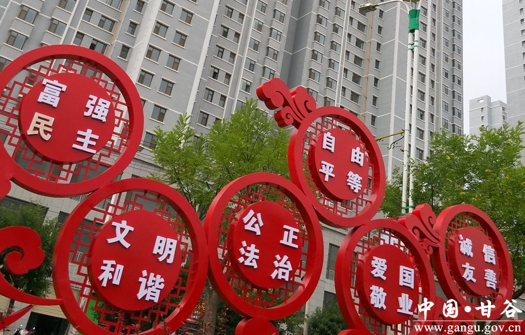 在甘谷,無(wú)論是車(chē)站、廣場(chǎng)、市場(chǎng)、超市等人員密集場(chǎng)所,還是教育、醫(yī)療、旅游等重點(diǎn)區(qū)域,隨處都能看到社會(huì)主義核心價(jià)值觀,“24字”就像空氣和水一樣存在于群眾生活中,并以喜聞樂(lè)見(jiàn)的形式展現(xiàn)社會(huì)主義核心價(jià)值觀的潛在內(nèi)涵,成為“百姓日用而自覺(jué)的行為準(zhǔn)則”。
