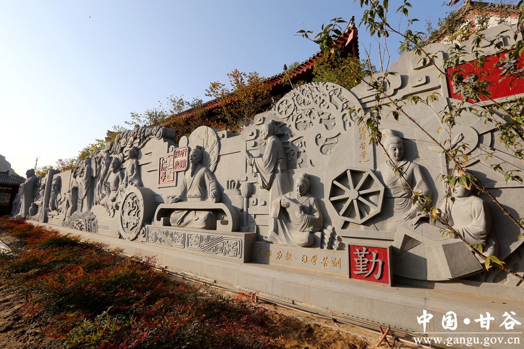 大像山下書輝煌。甘谷縣在城市東西延伸拓展,逐步拉開城市框架,豐滿城市用地空間。在西城區(qū)建成大像山水上公園的基礎(chǔ)上,為了弘揚(yáng)傳承古冀文明,提升大像山公園文化內(nèi)涵,斥巨資在公園內(nèi)建成了以石作蜀、姜維生平事跡為主題的崇文園和尚武園!皟蓤@”以藝術(shù)的形式,對(duì)有歷史影響力的兩位甘谷賢達(dá)人格精神進(jìn)行挖掘開發(fā),實(shí)現(xiàn)了以高尚的文化凝聚人、以先賢的榜樣激勵(lì)人、以名園風(fēng)彩陶冶人的目的,讓古冀城百姓們?cè)谙硎苊赖耐瑫r(shí),受到了文化的啟迪。目前,崇文園、尚武園已成為全縣愛國主義教育基地。