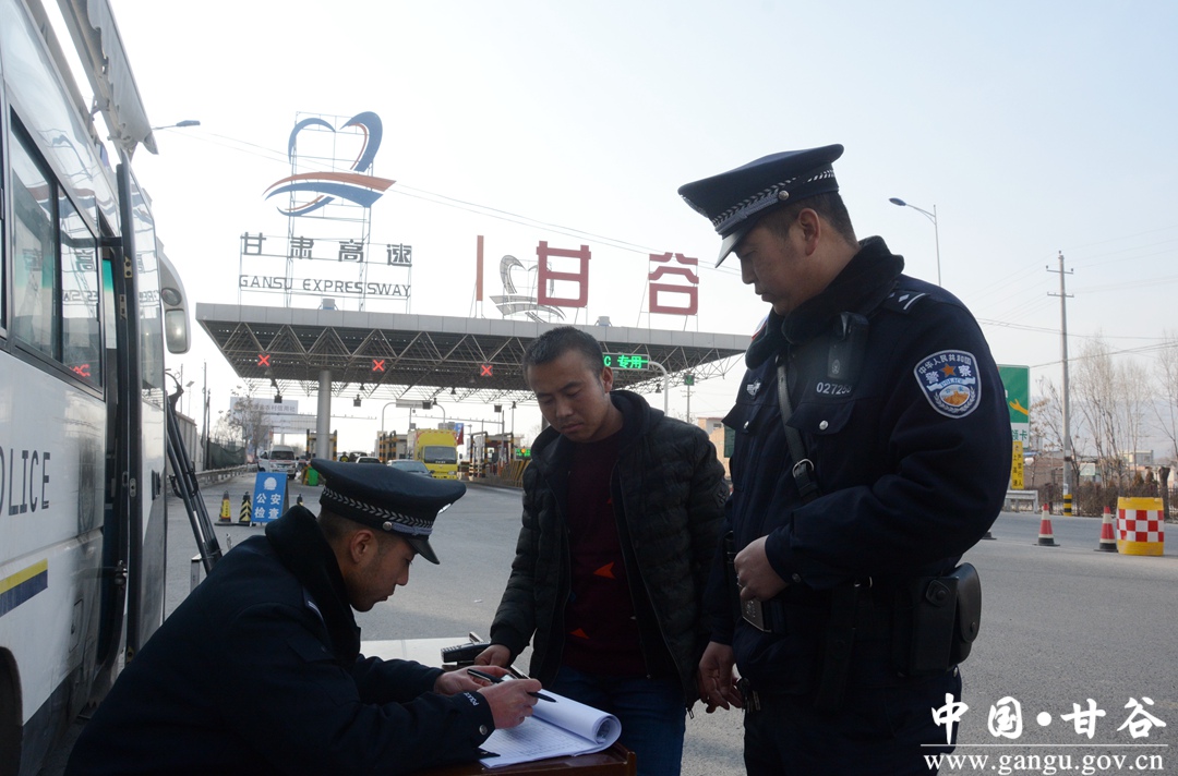 在高速出口收費(fèi)站,交警們忙著檢查過(guò)往車輛,為春運(yùn)“保駕護(hù)航”?h交警大隊(duì)民警說(shuō):“為了保春運(yùn),保春節(jié)平安,辛苦些是值得的!
