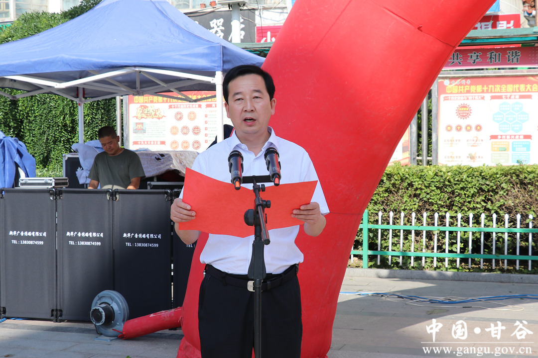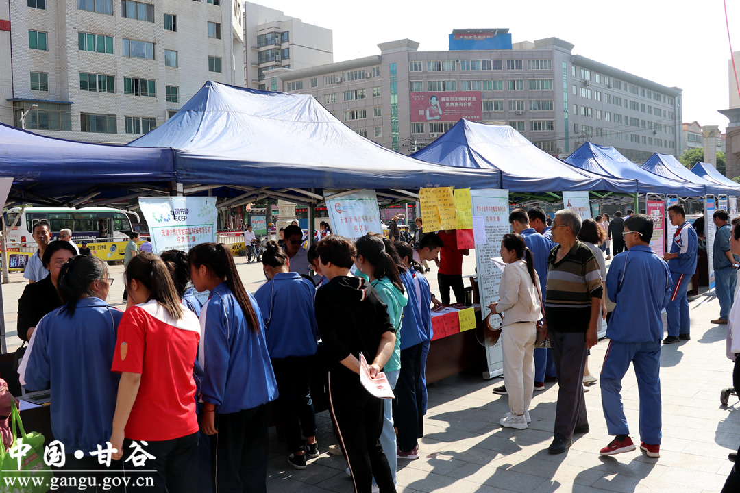 6月12日,東西部扶貧勞務(wù)協(xié)作2019年天津東麗區(qū)企業(yè)走進(jìn)甘谷專(zhuān)場(chǎng)招聘會(huì)在甘谷縣大什字廣場(chǎng)舉行。東麗區(qū)人社局副局長(zhǎng)董廣星,縣委副書(shū)記孟曉龍,縣委常委、統(tǒng)戰(zhàn)部部長(zhǎng)王剛,縣人大常委會(huì)副主任薛希武出席招聘會(huì);天津市企業(yè)代表,縣職校應(yīng)屆畢業(yè)生、應(yīng)往屆未就業(yè)高校畢業(yè)生、部分建檔立卡貧困勞動(dòng)力、農(nóng)村富余勞動(dòng)力等共計(jì)800余人參加招聘會(huì)。