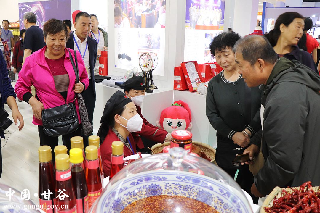 本次展覽會(huì)上共展出甘谷辣椒、花椒、雜糧、粉條等特色農(nóng)產(chǎn)品10余種,展出甘谷特色旅游文化,脊獸、木雕、剪紙等手工藝術(shù)品若干。其中,以甘谷縣扶貧車間為主的展位吸引了不少參展者的眼球。