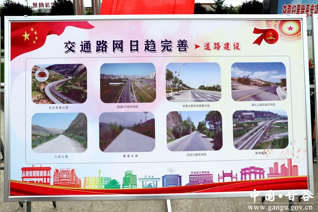 縣委副書記孟曉龍?jiān)谥罗o中說,70年來,在黨的堅(jiān)強(qiáng)領(lǐng)導(dǎo)下,歷屆縣委縣政府和全縣各級黨政組織高舉中國特色社會主義偉大旗幟,堅(jiān)持以經(jīng)濟(jì)建設(shè)為中心,牢牢把握改革發(fā)展穩(wěn)定大局,團(tuán)結(jié)帶領(lǐng)勤勞智慧的甘谷人民,歷盡艱辛、不懈奮斗,在時(shí)代浪潮中奮進(jìn),在艱苦創(chuàng)業(yè)中拼搏,全縣經(jīng)濟(jì)社會持續(xù)發(fā)展,各項(xiàng)事業(yè)穩(wěn)步推進(jìn),人民群眾安居樂業(yè),城鄉(xiāng)面貌發(fā)生了歷史性變化,譜寫了一幅幅發(fā)展的多彩篇章,取得了一個(gè)個(gè)令人矚目的輝煌成就。70年風(fēng)雨兼程、70年勵(lì)精圖治、70年滄桑巨變,如今的甘谷大地生機(jī)勃勃、充滿活力,邁進(jìn)全面小康的步伐鏗鏘有力。這次經(jīng)濟(jì)社會發(fā)展及脫貧攻堅(jiān)成就展,以豐富詳實(shí)的圖文資料,從不同時(shí)期、不同角度,展示了70年來特別是黨的十八大以來我縣經(jīng)濟(jì)、政治、文化、生態(tài)、社會、黨的建設(shè)和脫貧攻堅(jiān)等方面取得的顯著成就,記錄了全縣人民團(tuán)結(jié)一心、劈波斬浪的奮斗足跡,展示了廣大干部群眾對全面建成小康社會、建設(shè)富裕文明和諧美麗新甘谷的良好精神風(fēng)貌。