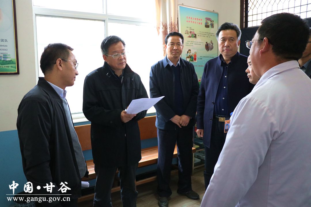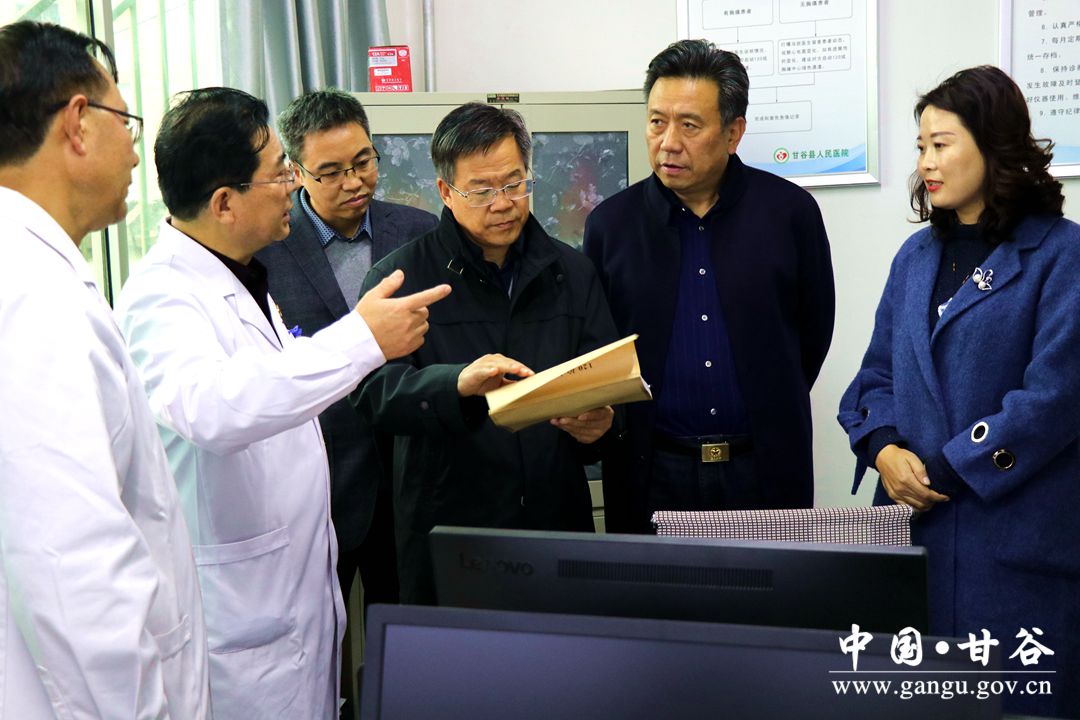 10月31日,省紀(jì)委派駐省衛(wèi)生健康委紀(jì)檢監(jiān)察組組長(zhǎng)袁秀智帶領(lǐng)調(diào)研組調(diào)研甘谷縣學(xué)習(xí)貫徹習(xí)近平總書記視察甘肅重要講話精神?h委常委,宣傳部長(zhǎng)張慶元一同調(diào)研。