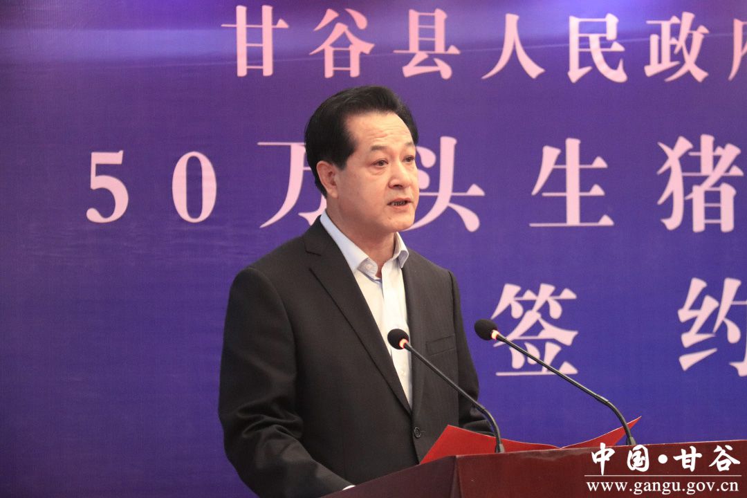 申君明在致辭中說,甘谷唐人神50萬頭生豬綠色養(yǎng)殖項目簽約是我縣開展招商引資、深化政企合作取得的又一重大成果,也是優(yōu)化產(chǎn)業(yè)結(jié)構(gòu)、推動高質(zhì)量發(fā)展的一項務(wù)實舉措,更是加強產(chǎn)業(yè)扶貧、助力決戰(zhàn)脫貧的一項具體行動。希望雙方以這次簽約為契機,進一步拓展合作領(lǐng)域、創(chuàng)新合作方式,營造互促發(fā)展、互利雙贏的良好局面?h委、縣政府將用最大的誠意、最優(yōu)的環(huán)境、最好的服務(wù),為唐人神集團在甘谷發(fā)展創(chuàng)造良好條件?h直有關(guān)部門和鄉(xiāng)鎮(zhèn)要全力配合支持,做好服務(wù)保障,及時協(xié)調(diào)解決項目推進中遇到的困難和問題,確保項目早落地、早開工、早投產(chǎn)、早見效。