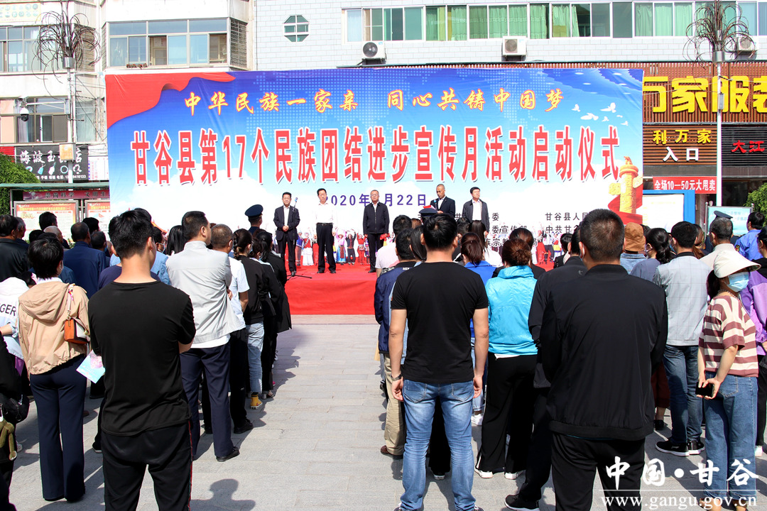 為深入貫徹落實(shí)黨的十九大和習(xí)近平總書(shū)記視察甘肅重要講話和指示精神,全面落實(shí)好中央、省、市民族工作安排部署要求,宣傳好黨的民族政策,全面推進(jìn)民族團(tuán)結(jié)進(jìn)步,在全社會(huì)營(yíng)造“中華民族一家親,同心共筑中國(guó)夢(mèng)”的濃厚氛圍。5月22日,甘谷縣舉行第十七個(gè)民族團(tuán)結(jié)進(jìn)步宣傳月活動(dòng)啟動(dòng)儀式。市民宗委調(diào)研員馬壽山,縣委常委、統(tǒng)戰(zhàn)部部長(zhǎng)王剛,縣人大常委會(huì)副主任薛希武,縣政協(xié)副主席董德福出席啟動(dòng)儀式;副縣長(zhǎng)李蘭平主持啟動(dòng)儀式;縣直有關(guān)部門(mén)和單位、各人民團(tuán)體代表,鄉(xiāng)鎮(zhèn)及社區(qū)代表,企業(yè)代表、宗教界代表共計(jì)180余人參加活動(dòng)。