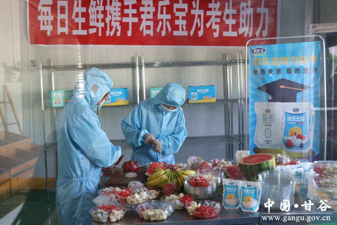 考生們?cè)诳紙?chǎng)內(nèi)奮筆疾書(shū),家長(zhǎng)們也在校外的“烤場(chǎng)”煎熬等待而在炎熱的酷暑中,仍有一股清涼滋潤(rùn)人心。甘谷縣每日生鮮聯(lián)合君樂(lè)寶為考生家長(zhǎng)送上500份水果拼盤(pán)。一份份愛(ài)心水果拼盤(pán)飽含著滿(mǎn)滿(mǎn)的祝福與期待,每日生鮮負(fù)責(zé)人告訴記者,今天是高考第一天,送水果活動(dòng)將貫穿高考整個(gè)期間,希望廣大考生再接再厲,在接下來(lái)的考試中保持心態(tài),取得好成績(jī),為實(shí)現(xiàn)人生理想邁出堅(jiān)實(shí)一步!