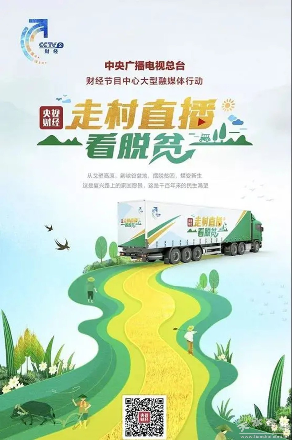 為記錄時代,CCTV-2央視財經(jīng)特別推出“走村直播看脫貧”大型融媒體活動,在未來的3個月時間,節(jié)目組將分南北兩條線路,跨越全國,走進(jìn)21個省市區(qū)的脫貧村,用鏡頭記錄脫貧村翻天覆地的變化,用車輪去衡量中國鄉(xiāng)村脫貧攻堅的歷程。