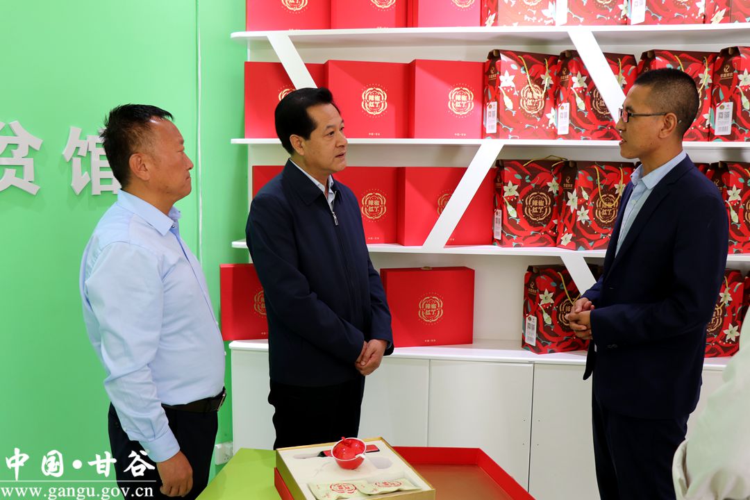 當天,申君明一行來到甘谷縣農(nóng)產(chǎn)品832消費扶貧館,詳細了解了產(chǎn)品展示、供應商入駐、商品質(zhì)量管控、倉儲物流服務、帶貧益貧效果等情況。