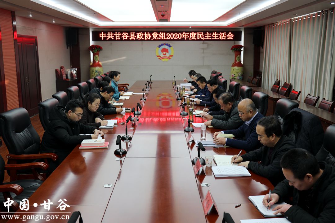 1月26日,甘谷縣政協(xié)黨組召開(kāi)2020年度民主生活會(huì)?h政協(xié)黨組書(shū)記、主席馬驥主持會(huì)議;縣政協(xié)黨組副書(shū)記董德福,黨組成員田小龍、郭長(zhǎng)勝、蔣文、李健、王滿生參加會(huì)議;縣政協(xié)副主席馬清平和各委辦負(fù)責(zé)同志列席會(huì)議;縣紀(jì)委監(jiān)委、縣委組織部有關(guān)負(fù)責(zé)同志到會(huì)指導(dǎo)。