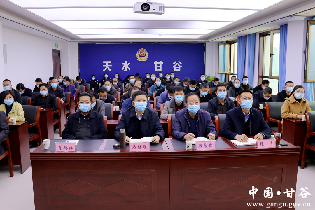 甘谷縣委常委、政法委書記馬福勝,縣人大常委會副主任薛希武,副縣長、縣公安局黨委書記、局長張濤,縣政協(xié)副主席董德福在甘谷分會場收聽收看會議。