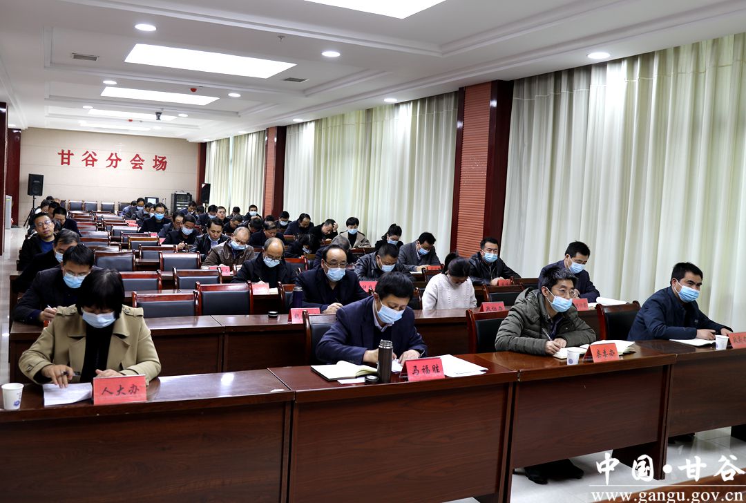 縣委常委、政法委書記馬福勝及各鄉(xiāng)鎮(zhèn)、縣直有關(guān)部門負(fù)責(zé)人在甘谷分會場收聽收看會議。