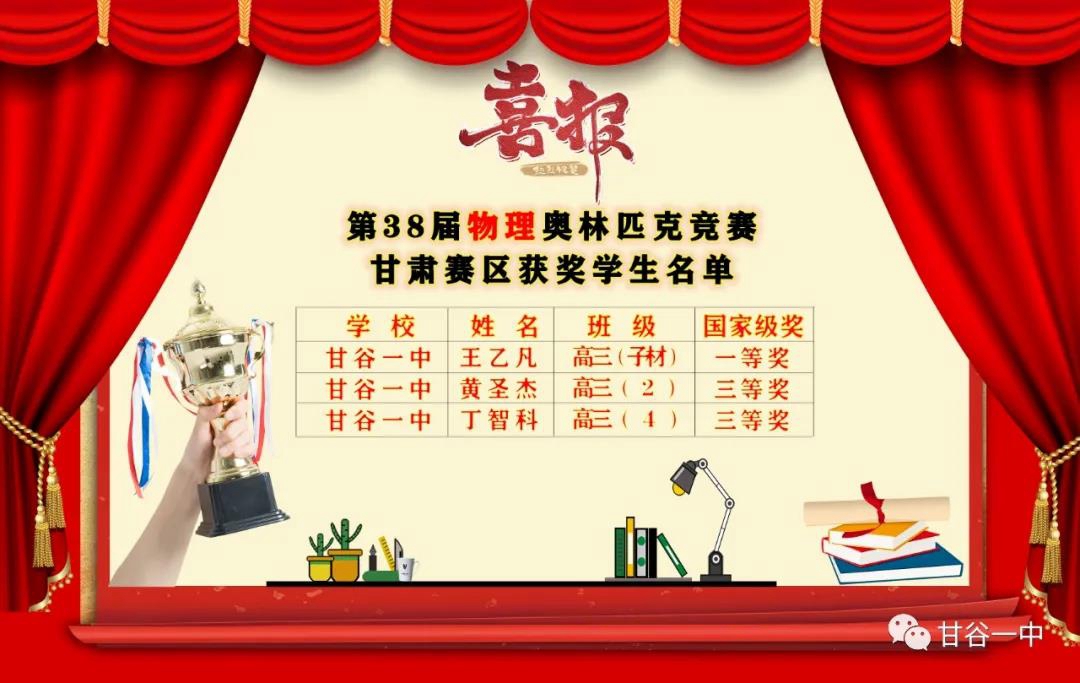奧賽傳捷報(bào),桃李競(jìng)芬芳!近日,2021年度高中數(shù)學(xué)、物理、化學(xué)、生物四大學(xué)科奧林匹克競(jìng)賽成績(jī)揭曉,甘谷一中參賽學(xué)子沉著應(yīng)對(duì),穩(wěn)定發(fā)揮,喜獲佳績(jī),再傳捷報(bào)。通過激烈的預(yù)賽選拔,40余名進(jìn)入決賽的學(xué)生中共有2人獲得全國一等獎(jiǎng),11人獲得全國二等獎(jiǎng),13人獲得全國三等獎(jiǎng),1人獲得省級(jí)一等獎(jiǎng)。其中高三子材班學(xué)生王乙凡獲得物理競(jìng)賽全國一等獎(jiǎng)、省級(jí)一等獎(jiǎng),高三(1)班學(xué)生王子凡在生物競(jìng)賽中名列全省第11名,獲得全國一等獎(jiǎng)。