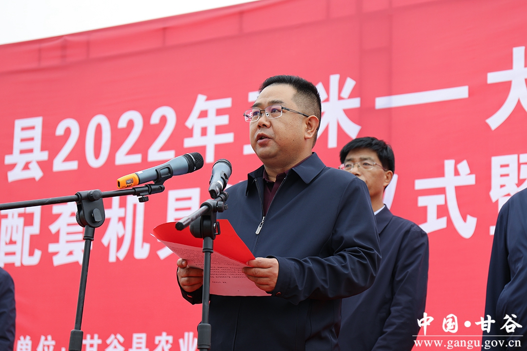 為深入貫徹習近平總書記關于糧食安全和大豆供給的重要指示精神,高質量完成全縣玉米大豆帶狀復合種植任務,示范推廣好大豆玉米帶狀復合種植全程機械化種植技術,提升糧食作物標準化生產水平,4月14日,甘谷縣舉辦2022年玉米—大豆帶狀復合種植配套機具發(fā)放儀式暨現場培訓會?h委常委、副縣長藺森山出席會議并講話;安遠鎮(zhèn)、有關合作社負責人交流發(fā)言;縣農業(yè)農村局、縣農機中心、縣農技中心、項目實施有關鄉(xiāng)鎮(zhèn)和農民專業(yè)合作社負責人、群眾代表共計100余人參加培訓。