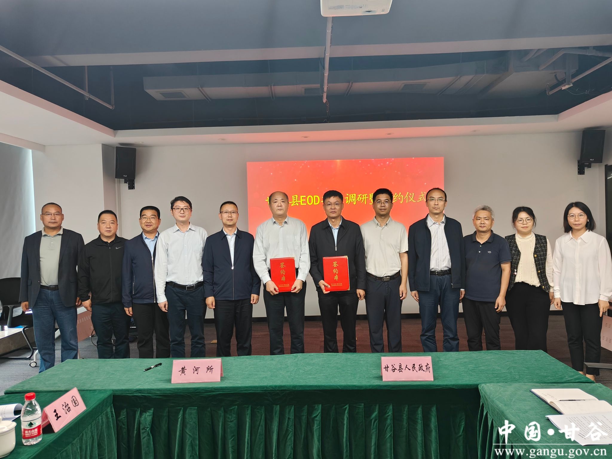 在黃河生態(tài)環(huán)境科學研究所,與會雙方共同觀看了甘谷縣招商引資宣傳片。孫忠平介紹了甘谷縣EOD項目謀劃情況,并代表縣政府與研究所簽訂了戰(zhàn)略合作框架書。