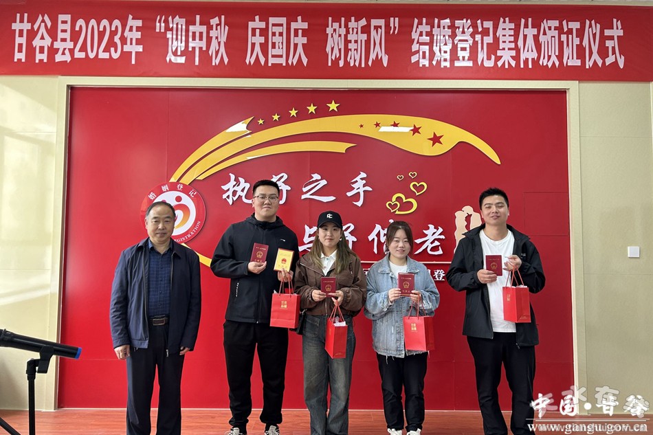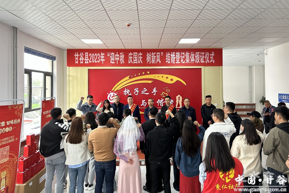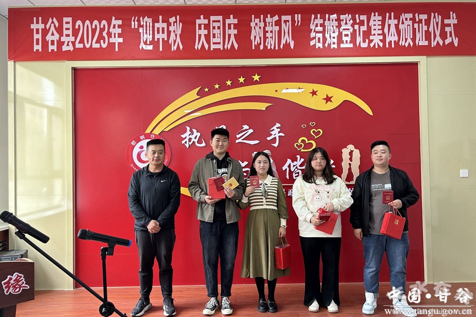 值中秋國慶雙節(jié)來臨之際,9月28日上午,在縣民政局婚姻頒證大廳舉辦了甘谷縣2023年“迎中秋 慶國慶 樹新風(fēng)”結(jié)婚登記集體頒證儀式。